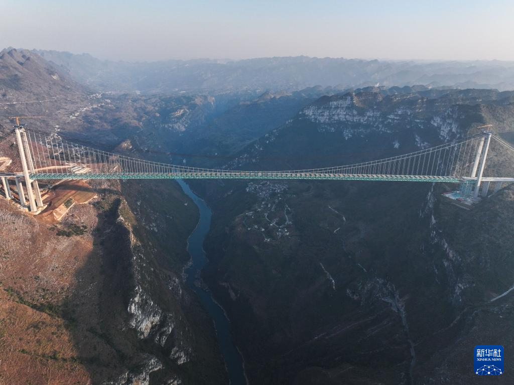 这是1月14日拍摄的贵州六安高速公路花江峡谷大桥(无人机全景照片)。新华社记者 杨文斌 摄