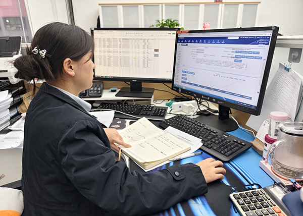 邮储银行工作人员在审核项目贷款资料