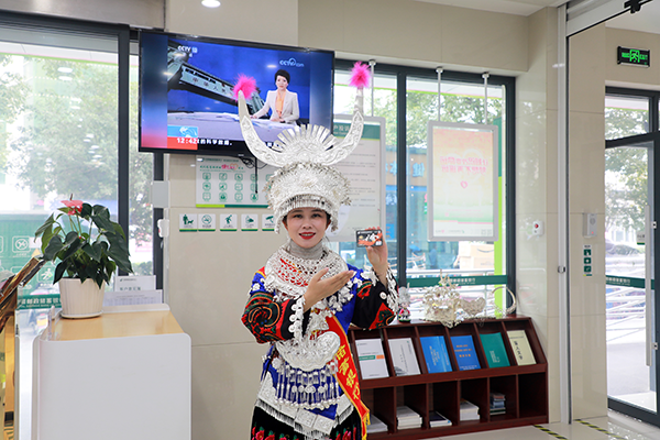 邮储银行黔东南州分行大堂经理展示“村BA”联名卡