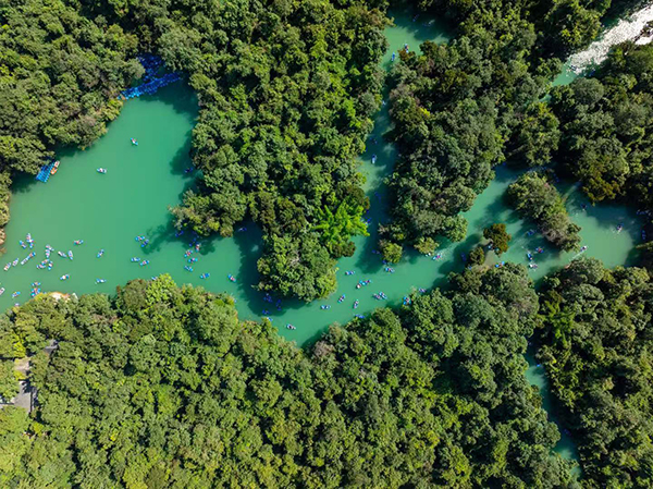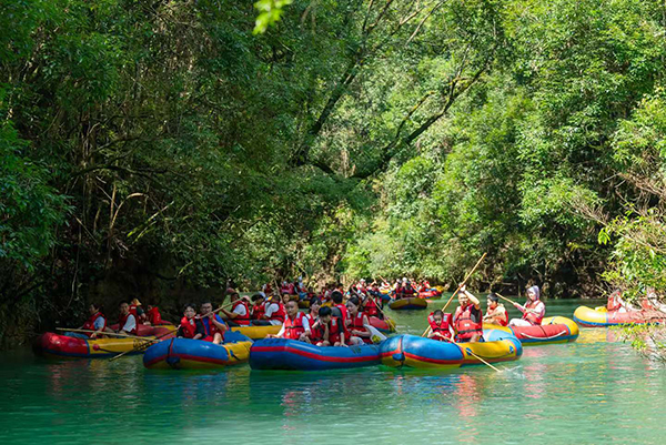 “荔波毓秀胜蓬瀛,七孔沧桑蕴古情。”荔波县民族风情古朴浓郁,因其独特的地理位置和丰富的文化底蕴,孕育了地球“绿宝石”小七孔。踏入小七孔景区,依托景区摆渡观光车亲水、戏水以及“水上飞人”“水上摩托艇”等旅游项目吸引了游客的目光。