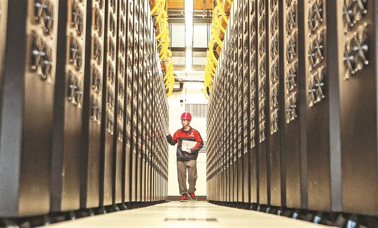 贵安超算中心数据机房一角。新华社发