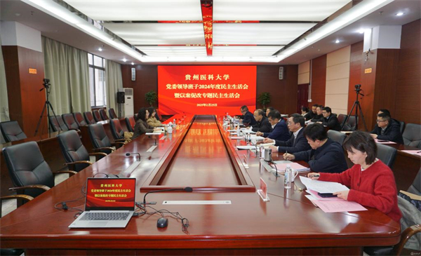 按照党中央和省委部署要求,2月25日,贵州医科大学校党委在北校区行政楼六楼连廊会议室召开党委领导班子2024年度民主生活会暨以案促改专题民主生活会。会议由党委书记何志旭主持,校党委领导班子成员出席会议。省委第三十督导组到会指导。学校部分职能部门负责人、基层党员干部代表列席会议。
