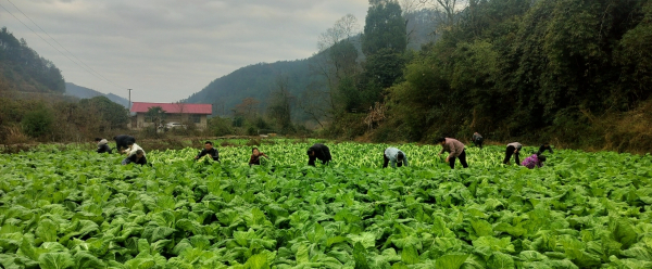 春雨催耕喜丰收,舌尖好菜采收忙。2月28日,走进贵州省黔东南州岑巩县㵲水街道马坡村蔬菜种植基地,村民们正忙着收割成熟的芥菜,现场一片繁忙景象。