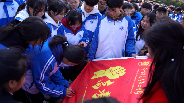 宣誓结束后,同学们在高考战旗上签下姓名和心愿,每一笔都承载着对未来的期许。这场活动不仅是对学子成长的见证,更是激励高三学子以拼搏之姿迎战高考,以担当之心书写人生华章。