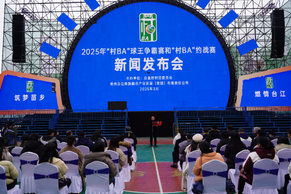 3月7日,2025年“村BA”球王争霸赛和“村BA”约战赛新闻发布会在台江县台盘“村BA”篮球场举行。发布会在台江县特色舞蹈节目《时代感》和《扇影舞跃》表演中拉开序幕。