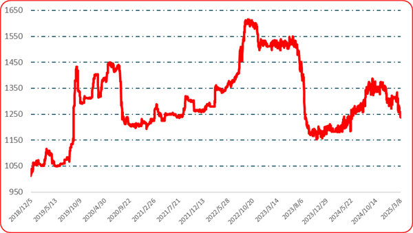 图1. 中国遵义朝天椒(干椒)批发价格综合指数运行图