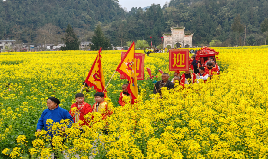 3月22日,凤冈新建镇长碛古寨的油菜花竞相绽放,金黄的花海与古朴的村寨相互映衬,构成了一幅如诗如画的田园美景,吸引了众多游客前来观赏。与此同时,“花开长碛”系列活动也在此精彩上演,不仅为游客带来了一场视觉和味觉的盛宴,也将进一步推动新建镇旅游产业的发展,为乡村振兴注入活力。
