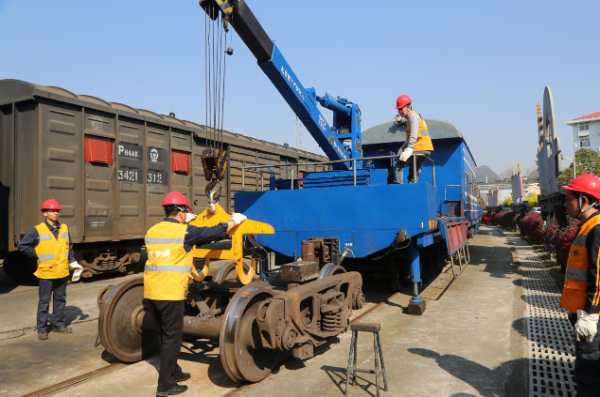 演练中,运用车间抢险组率先对水淹车辆进行全方位技术检查,重点排查走行部、制动系统等关键部件受损情况,并采用专用设备对车辆进行排水除淤。与此同时,站修车间紧急调派段属抢险救援换轮车辆,对模拟故障轮对实施快速更换,最大限度压缩抢修时间。各部门分工明确、紧密配合,仅用1小时28分钟便完成受损车辆处置,高效恢复线路运输秩序。
