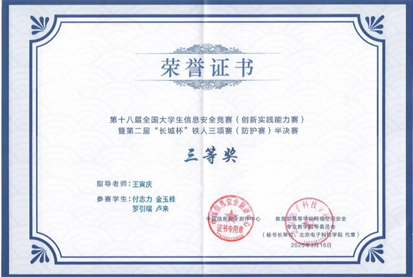 理工学子在赛事中的出色表现,充分彰显了学院学生在网络空间安全领域的专业能力和勇于探索、敢于创新的精神风貌,将带动青年学子积极投身于信息安全这个充满挑战与机遇的领域,为构建更加安全清朗的网络空间贡献力量。