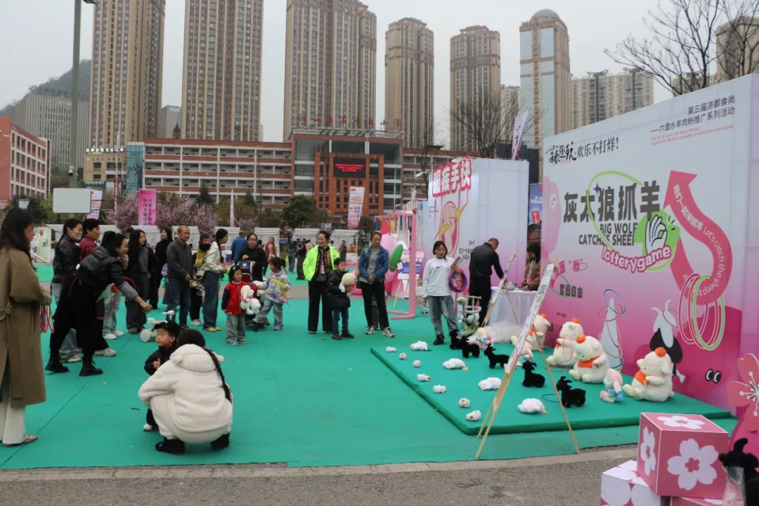 现场邀请“水城羊肉粉”现烹、预包装羊肉粉、羊汤锅、盘县火腿、油辣椒、刺梨饮品等产品商家20家参与活动,活动自3月22日通过黔味达六盘水本地生活服务平台小程序线上销售预热,3月28日16:00—3月30日期间在万达广场集中展示销售,现场设置黑羊羊互动游戏、灰太狼抓羊游戏、眼疾手快反应力挑战游戏等多个互动游戏,消费者现场购买羊肉粉及相关产品每满10元即可兑换一次游戏机会,不设上限,游戏挑战成功可领取丰厚奖品。