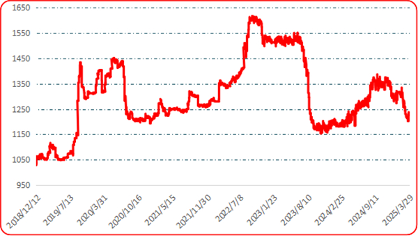 图1. 中国遵义朝天椒(干椒)批发价格综合指数运行图