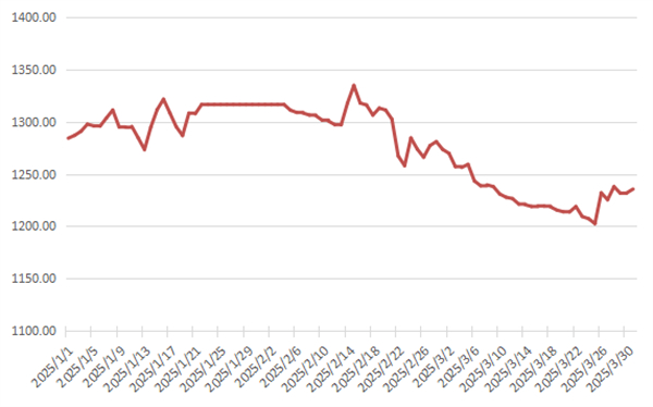 新华财经北京4月3日电(李欣仪)中国干辣椒系列价格指数数据显示,一季度中国遵义朝天椒(干椒)批发价格指数收于1235.48点,指数一季度均值为1277.53点,较2024年四季度均值下跌65.02点,跌幅4.84%,较去年同期上涨84.89点,涨幅7.12%;三樱椒批发价格指数一季度均值为907.51点,环比下跌0.07%,同比上涨30.07%;新一代批发价格指数一季度均值位923.14点,环比下跌13.10%,同比下跌13.82%;印度进口椒批发价格指数一季度均值位880.50点,环比下跌13.40%,同比下跌31.01%。