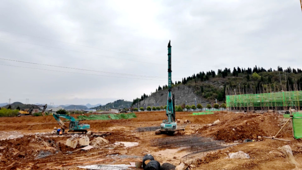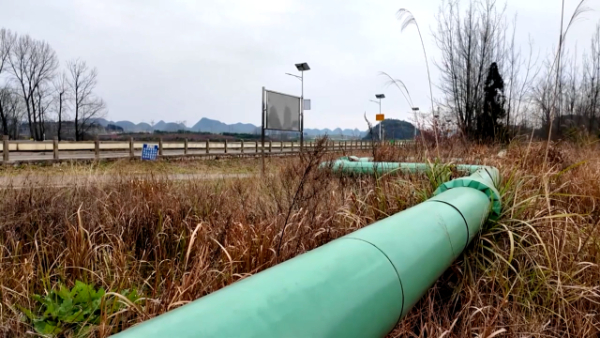 在城区青山绿城府邸项目建设现场,一片热火朝天的景象。在该项目外,一条绿色的管道从普定循环经济工业园区出发,延绵数公里,进入青山绿城府邸项目建设现场。