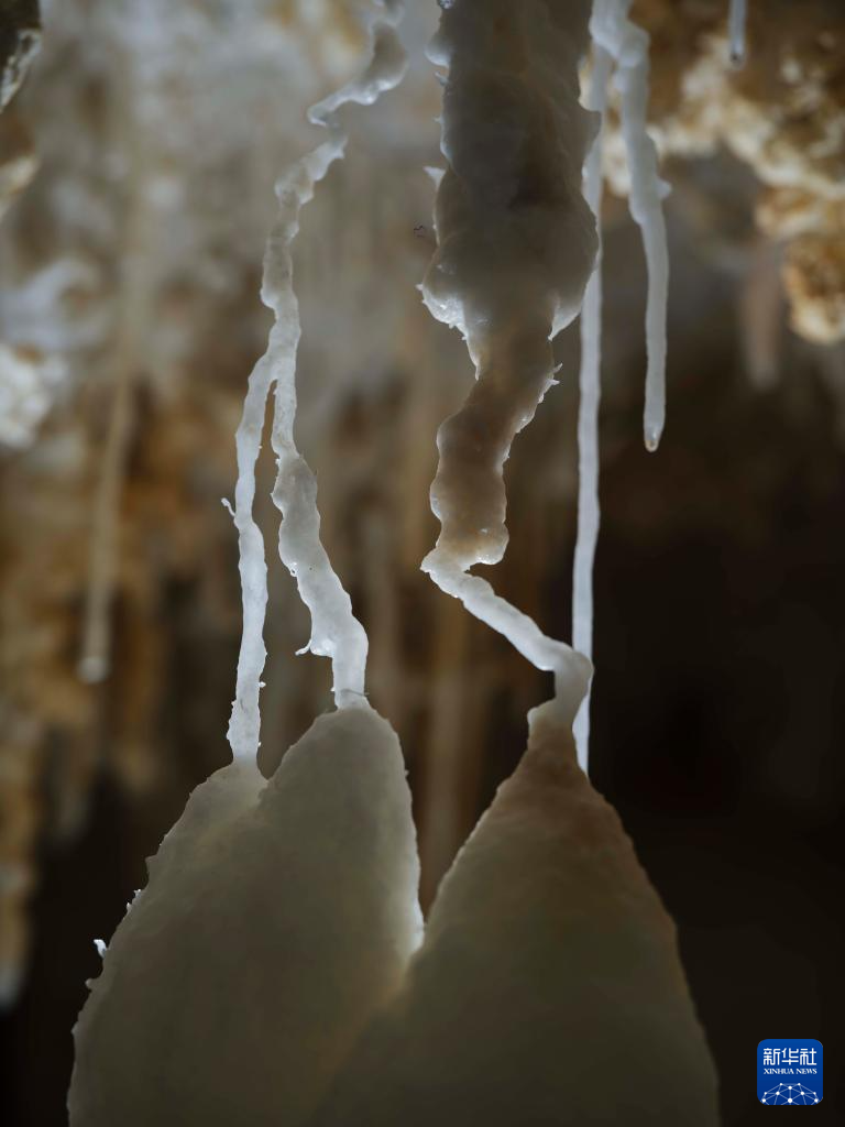 探险队员在洞内发现的“鹅管”景观。新华社发(赵揭宇 摄)