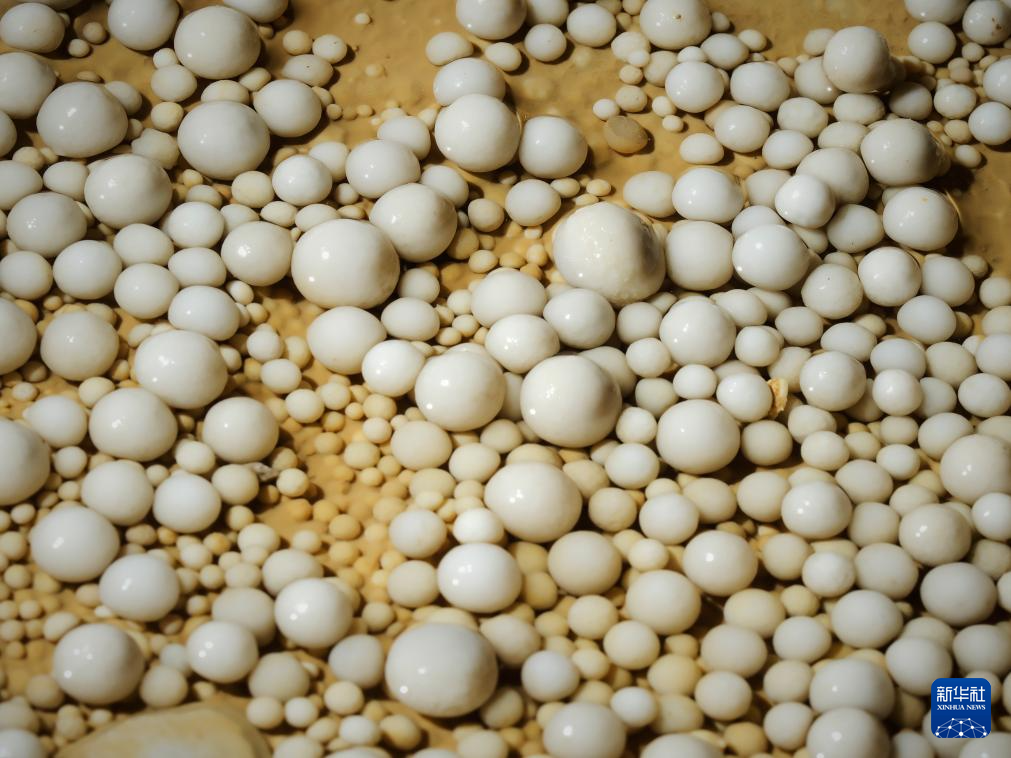 探险队员在洞内发现的“穴珠”。新华社发(赵揭宇 摄)