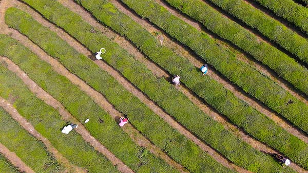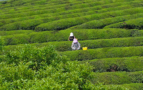 茶农采摘茶叶。