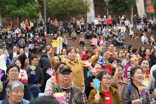 当日下午,香樟林广场热闹非凡,七百余名观众齐聚“村迪”舞台。舞台上参赛选手载歌载舞,舞台下掌声、欢呼声此起彼伏,观众或随音乐摇摆互动,或举起手机进行“线上共舞”,将这场充满“土潮”气息的派对氛围不断推向高潮。