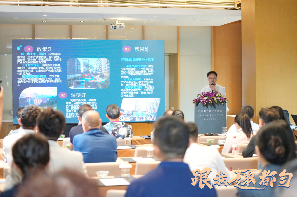 当天下午,“跟我趣都匀”城市推荐活动之“旅居地产”专题招商会在广州富力君悦大酒店举行。都匀市围绕“政策支撑、产业转型、市场潜力”三大内容,向广州企业全面推介都匀旅居地产发展优势及规划蓝图。会上,广州、都匀两地房产企业根据不同需求,共同交流探讨多种合作模式,为两地康养旅居产业发展注入动力。