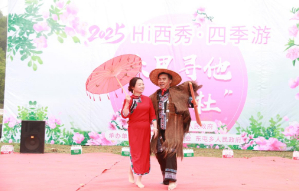 "杜鹃花开红满坡,阿妹采花等阿哥……"在古杜鹃花海下的演出舞台,苗族、布依族山歌队用原生态多声部演唱赢得阵阵掌声,游客近距离感受到了浓郁的少数民族文化氛围。活动现场还设置了"山歌互动区",游客可跟随非遗传承人学唱简版山歌,获胜者可获赠手工特色礼品。这种"场景化传承"让古老歌谣焕发新生,游客在参与中提升了旅游获得感。