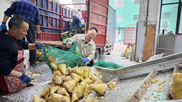 在赤水经开区加工厂,工人忙加工赤水黄金笋。(张浪 摄)