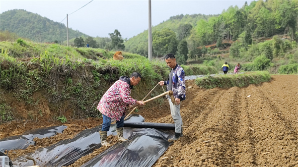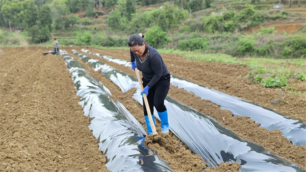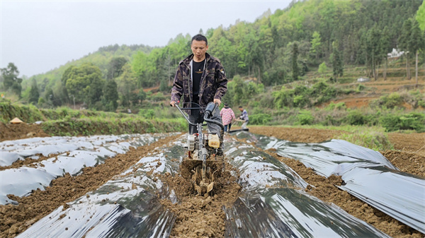 “现在下雨,好多老板都打电话喊我们去干活,根本忙不过来,一天能挣个100多元。”工人杨昌菊说,“之前我也来给烟地起垄,起垄结束就去育苗大棚里给烟叶剪叶,现在下雨了又来干覆膜的活路。”