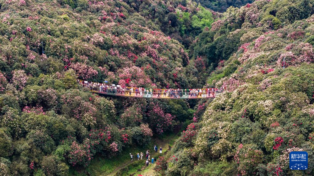 四月芳菲,大地春归。近日,贵州省毕节市百里杜鹃景区的杜鹃花开始进入盛花期,前来观赏游玩的游客络绎不绝。