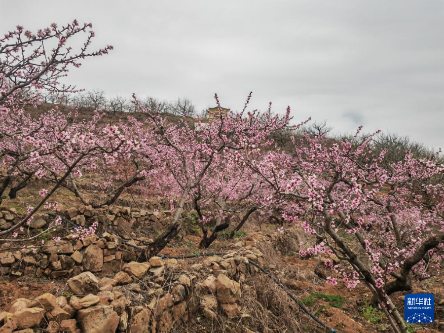 威宁县龙场镇树舍社区油桃种植基地内盛开的桃花。新华社记者施钱贵 摄