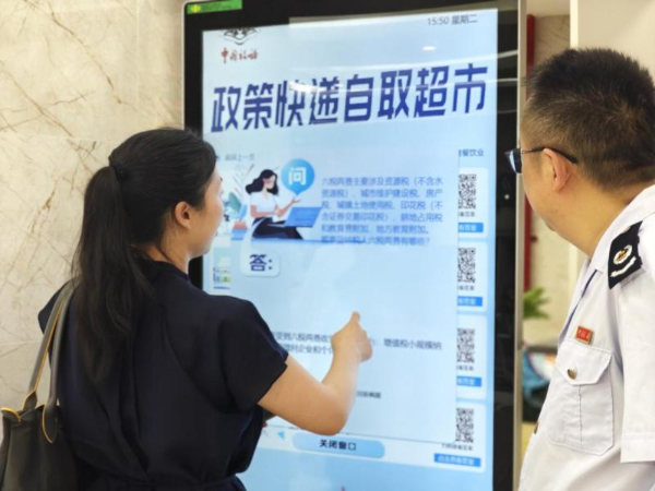 自行点单、选择问题、生成政策讲解、扫码“打包”政策……点击贵阳市南明区税务局办税大厅“政策快递自选超市”设备,纳税人即可享受量身定制的个性化辅导。