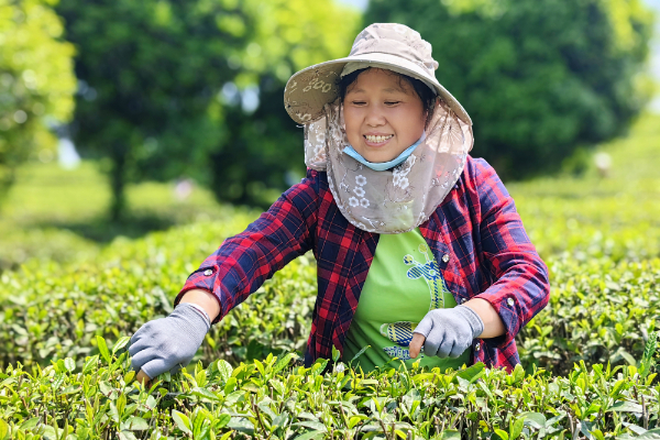据了解,近年来,九仓镇积极探索生态治理与发展特色产业有机结合之路,依托特殊的地理位置和自然资源优势,采取“支部+公司+合作社+农户”的“村社合一”模式,将5个村居的2180亩荒山变茶山,让农民变股民。目前,九仓镇茶叶种植基地面积达1.1万亩,采茶旺季能带动1200多名像蔡维霞这样的妇女就业,为当地群众提供了可观的收入来源。