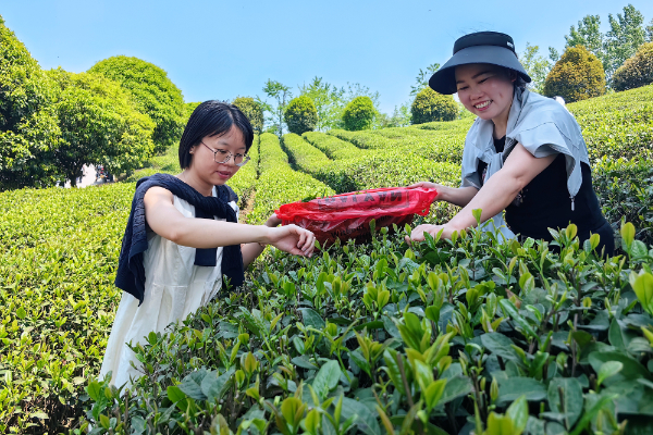 走进万亩茶园,绿意盎然,茶树新芽鲜嫩欲滴,游客们穿梭在茶树间,亲身参与采茶活动,体验传统的农事乐趣。“平时上班也比较忙,很少有机会亲近大自然,这次参加采茶节,不仅能亲手采摘茶叶,茶山也特别漂亮,我还特地带了相机来拍照,感觉整个人都放松了下来。”游客王珊说。