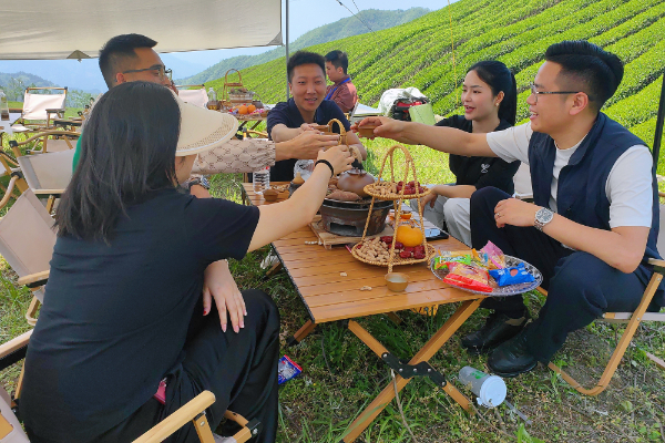 除了采茶体验,现场还举办了品茶、茶园音乐会等丰富多彩的活动,让游客全方位领略茶文化的博大精深。“这次采茶节活动很精彩,有表演、围炉煮茶、情歌对唱等很多项目,茶山也很漂亮,体验很不错,玩得也开心。”游客王君说。