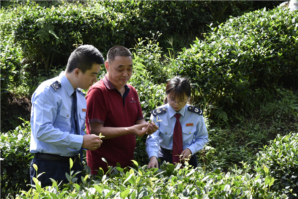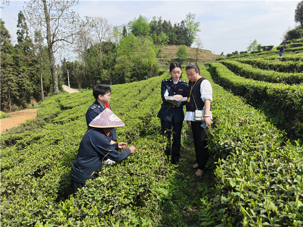 兴义市税务局走进绿茗茶业生态基地了解企业生产经营情况,现场详细讲解纳税信用等级评定政策与银税互动相关知识。(张松 摄)