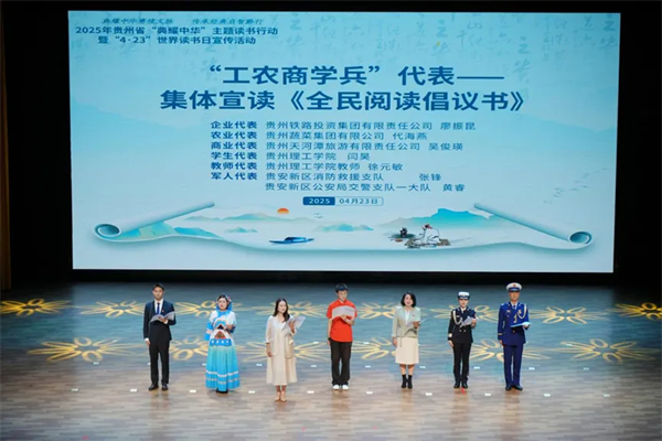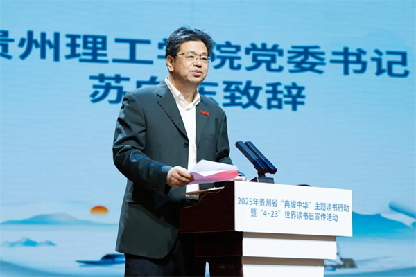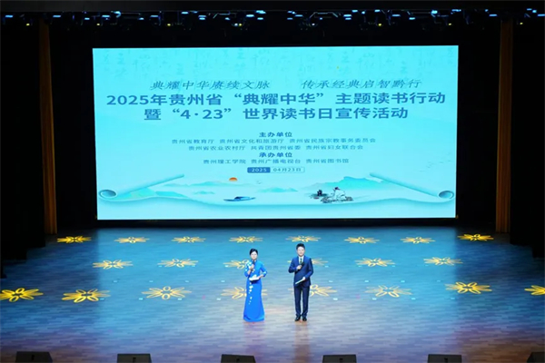 典耀中华赓续文脉,传承经典启智黔行。4月23日,由贵州省教育厅、贵州省文化和旅游厅、贵州省民族宗教事务委员会、贵州省农业农村厅、共青团贵州省委、贵州省妇女联合会主办,贵州理工学院、贵州广播电视台、贵州省图书馆承办的2025年贵州省“典耀中华”主题读书行动暨“4·23”世界读书日宣传活动在贵州理工学院举行。
