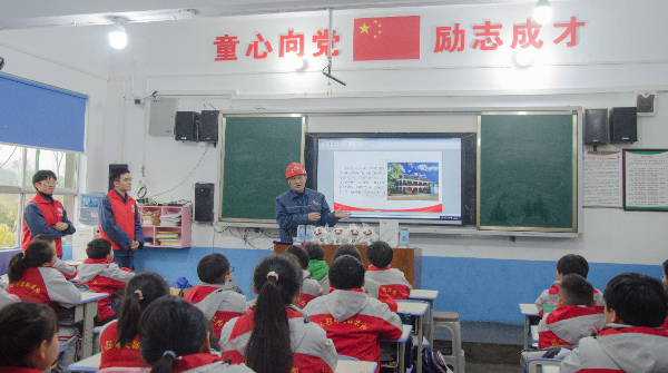 申友强在遵义娄山关红军小学宣讲红色故事。(艾启军 摄)