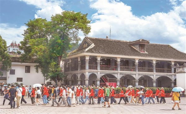 游客在遵义会议会址感受红色文化,接受爱国主义和革命传统教育。卢忠南 摄