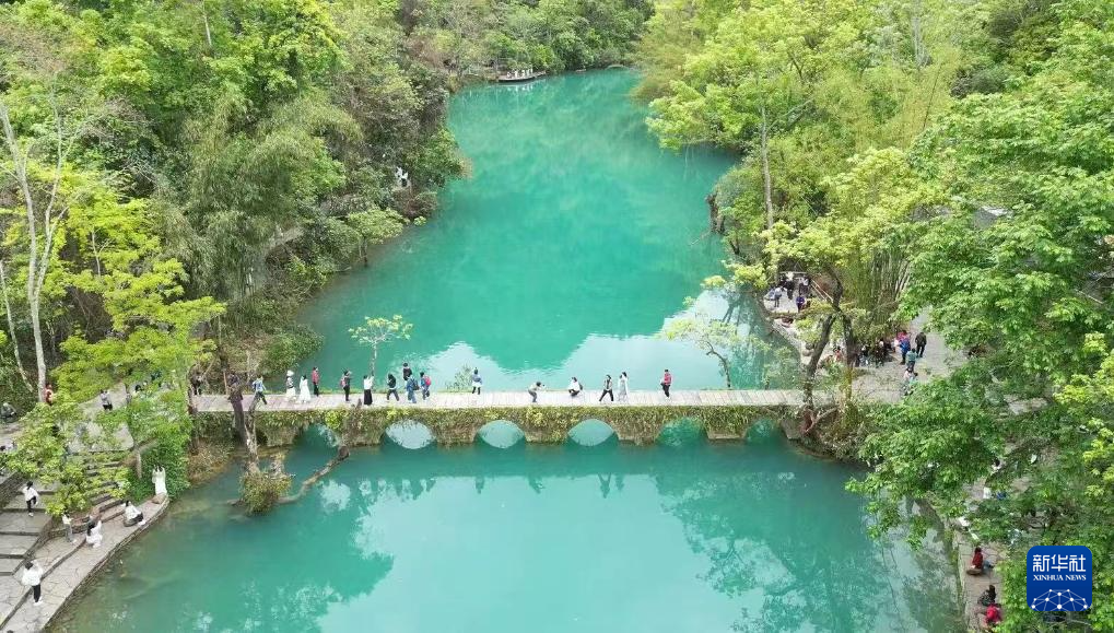 4月24日,游客在荔波小七孔景区小七孔桥游玩。新华社发(荔波县融媒体中心供图)