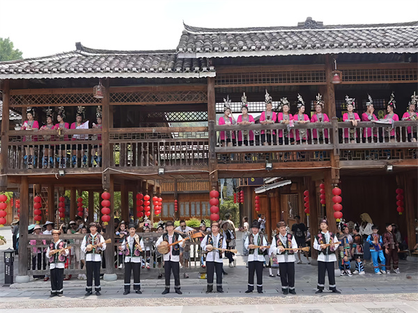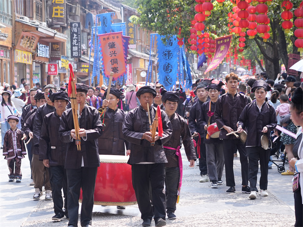 肇兴“侗寨笙歌”迎宾朋活动。(石卫勇 摄)