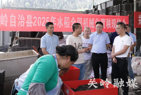 近日,关岭自治县2025年水稻全程机械化育秧示范推广现场会在关岭自治县水稻全程机械化育秧中心举行,各乡镇(街道)农业服务中心负责同志和部分农户代表参加。