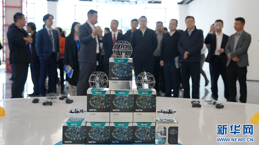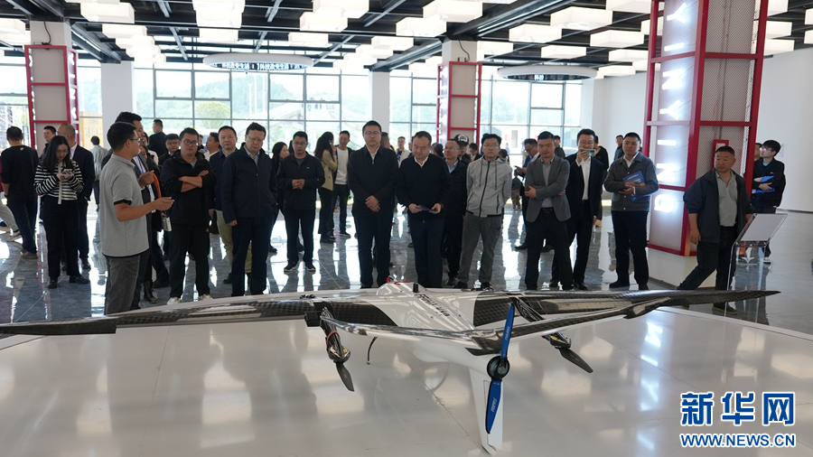 参会人员参观基地无人机展厅。新华网 周远钢 摄