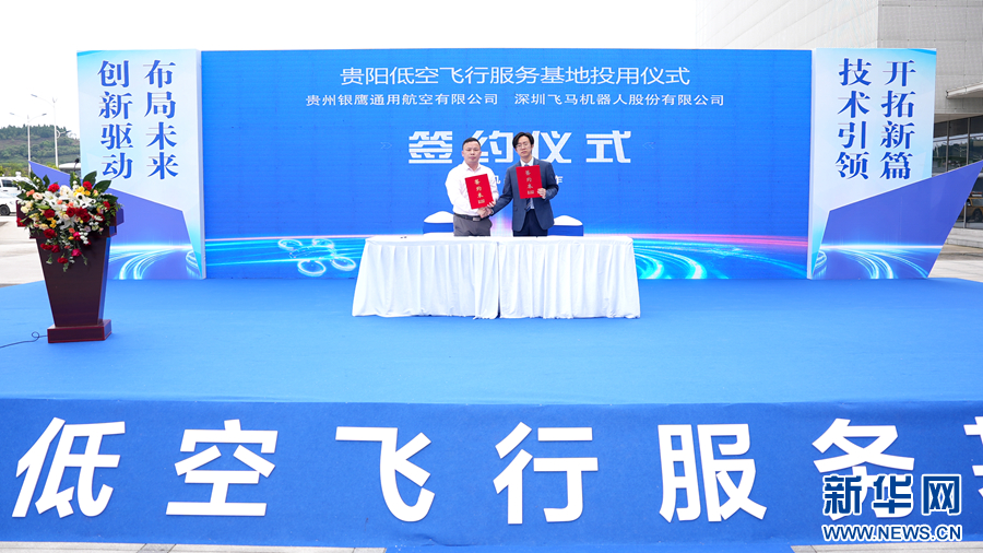 投用仪式上,贵州银鹰通用航空有限公司分别与贵州低空协会、云南恒鹏投资有限公司、贵州云图瞰景地理信息技术有限公司、深圳飞马机器人股份有限公司签约,共同在资源整合与能力互补、无人机技术生态布局、巡检-测绘-救援、无人机山地场景创新应用等方面开展合作,为低空飞行提供更加安全、高效的服务保障,也为区域经济发展注入新活力。