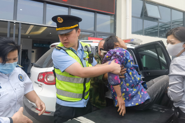 “生命至上!”面对突发状况,交通执法人员当机立断启动应急预案。在依法取证后,迅速协助家属将伤者平稳转移至执法车辆后座。执法人员开启应急闪光灯,仅用20分钟便将伤者安全护送至三都县人民医院。因送医及时,伤者已得到有效的救治。