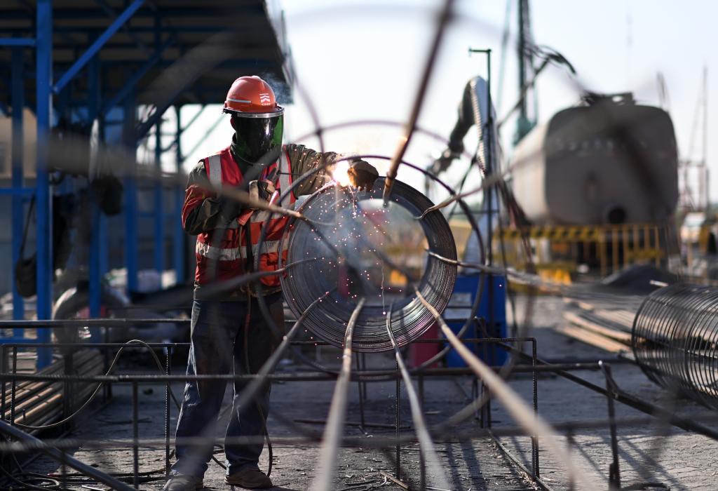 2月12日,工人在位于吉林省吉林市的中国石油吉林石化公司炼油化工转型升级项目120万吨/年乙烯装置建设现场施工作业。新华社记者 许畅 摄
