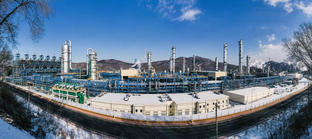 这是2月12日拍摄的位于吉林省吉林市的中国石油吉林石化公司炼油化工转型升级项目120万吨/年乙烯装置建设现场(无人机照片)。新华社记者 许畅 摄