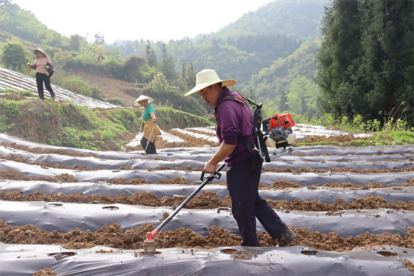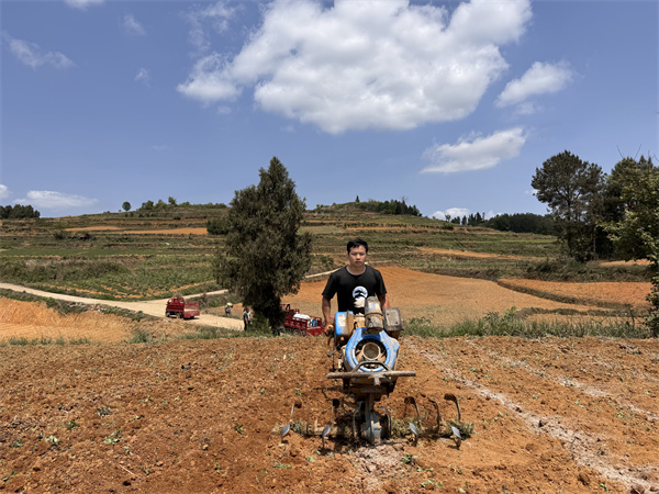 宣威镇笔架村烟农使用旋耕机进行土地翻犁。