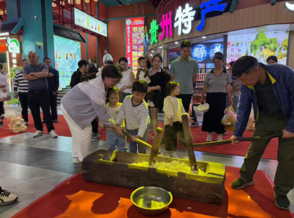 活动期间,嗨乐街区从早到晚安排了紧凑且精彩的节目。白天,“打糍粑”“音乐现场”“芦笙表演”等活动热闹开启“五一”之旅,游客不仅能现场免费品尝软糯的糍粑,还能亲身参与制作,在体验传统民俗魅力的同时,感受劳动的快乐。