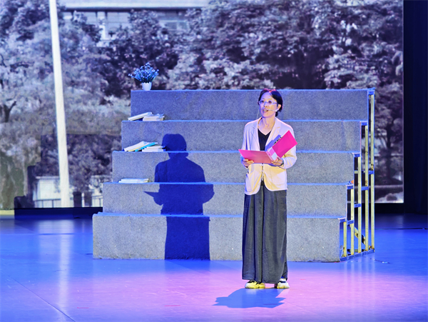 5月6日,贵州财经大学在学生活动中心大礼堂隆重举行“薪火相传续华章 青春奔赴向未来”纪念五四运动106周年暨学生表彰大会。在活动中,一幕新颖的表演形式,引起了学生的反响与共鸣。学校关工委委员、退休教授张虹与青年学生同台,用艺术化的方式讲述了贵财发展的历程。通过一张张泛黄的照片和一个个让人热血沸腾的故事,他们共同回答了在不同历史时期,青年何为的时代问题。