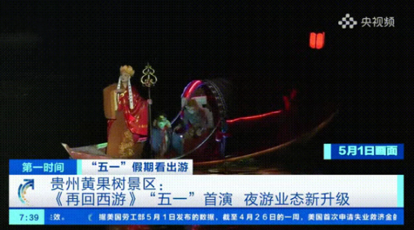 “五一”假期,贵州新闻联播连续报道“低空载人航空器首飞展演”与《再回西游》仙幻夜游项目等,聚焦黄果树旅游区创新实践。