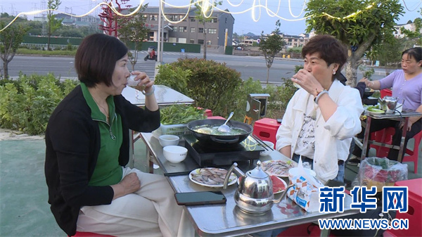 暮色渐深,粮膳禧厨餐馆的服务员仍在向食客讲解特色菜品,杨姐家常菜馆的灶火映红厨师脸庞……夜幕下的韭黄村,人潮涌动、车来车往。霓虹灯影中,这个曾经寂静的布依族村寨,正以夜的律动谱写乡村振兴新篇章。(支逃云 邓娴)