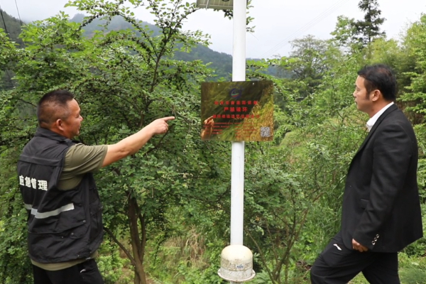 地质灾害监测员正查看隐患点情况。潘蝶 摄