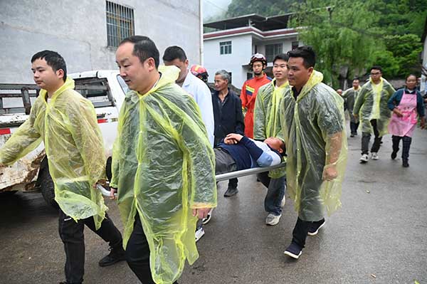 5月8日,贵州省铜仁市松桃苗族自治县乌罗镇峰岩村村民在开展汛期地质灾害逃生演练。